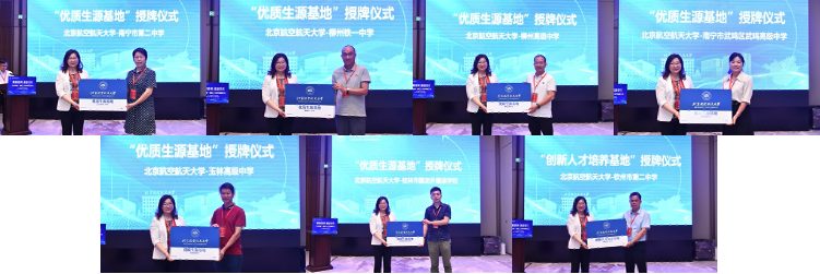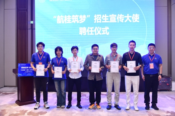 为强化学校招生宣传工作质量,扩大学校在广西学子中影响力。学校广西招生组聘请了11名“启航导师”和52名“招生大使”,承担起促进北航与广西各中学精准对接的责任,共同推动我校在广西的招生与宣传工作。邓怡为郑彦良、贠超、马小兵等“启航导师”代表颁发聘书,刘睿为梁恩和、赵圆、李炫等师生代表颁发“航桂筑梦”招生宣传大使聘书。