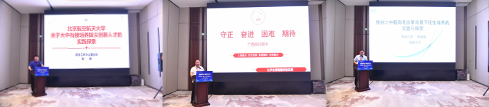 刘睿做北航人才培养情况专题报告。他提到,北航始终以服务国家为最高追求,不断深化产教融合,着力构建具有典型行业特色的卓越工程师培养体系,源源不断为国家培养输送了大批堪当大任的领军人才和卓越工程师。希望可以深化与广西各中学协同增效,构建“交-传-创-融”大中衔接协同育人模式,助力拔尖创新人才培养。