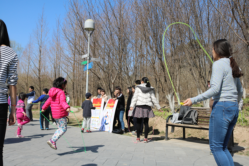 上午九点,支部第一小组成员到达奥林匹克森林公园。大家积极热烈的做起了准备工作,贴海报,挂条幅,准备礼品。放眼望去,跑道上全是锻炼的人,跑步的,竞走的,轻快的步伐,矫健的身姿,小组成员都被他们热情深深感染。上午九点半,活动正式开始,小组成员耐心给锻炼的市民做正确运动姿势讲解,大家也都争相演示,热烈讨论。同时我们还开展了跳绳活动,让大家都积极参与锻炼,参与跳绳并持努力突破自己的就可以获得跳绳作为奖品。参加活动的人络绎不绝,来交流正确运动,健康锻炼的人也是积极踊跃。中午十二点半,活动圆满结束。