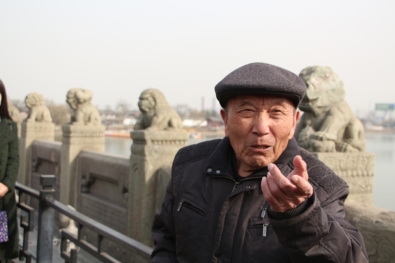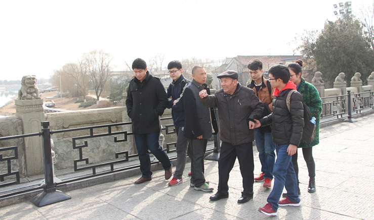 首先,支部成员集体参观了卢沟桥,站在桥头举目远眺,两排小狮子分居两旁,形态各异,可以看到有好多地方有破残的迹象,但是完全不影响欣赏雕刻者精湛高超的技艺,每个人都被深深的折服。之后我们前去拜访了“七七事变”亲历者郑福来同志,他作为一名历史的见证者,在没有鲜花也没有仪式的情况下,60多年来一直在自愿承担着历史的诉说者的身份,不为名利,只是想让更多的人牢记这段历史,让更多人奋发图强。86岁老人郑福来站在饱经战火的卢沟桥上,给我们重述了七七事变的经过,让那些被淡忘的历史重新展现在了我们的面前。