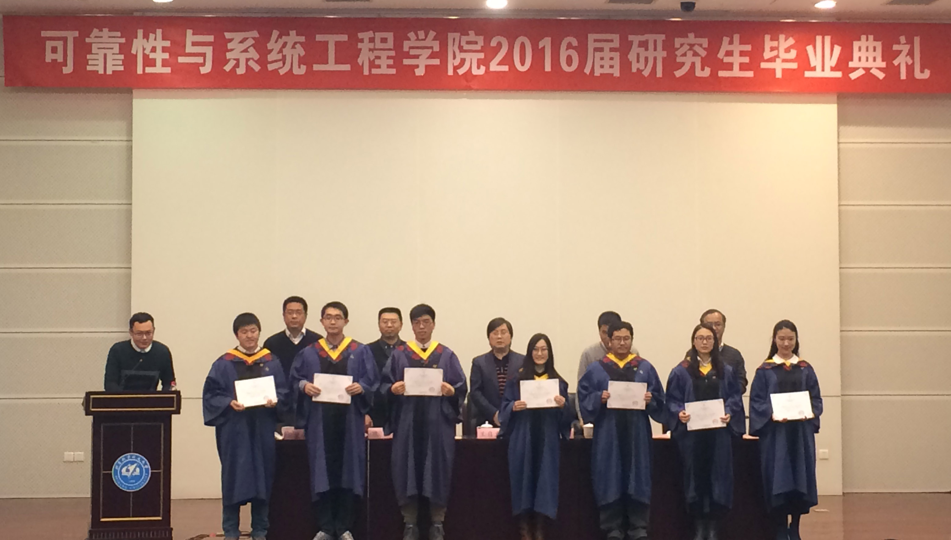 1月15日14:00,可靠性与系统工程学院2016届研究生毕业典礼在新主楼第二报告厅隆重举行,院长王自力教授、党委书记赵廷弟教授、学位委员会主席康锐教授、副院长曾声奎教授、党委副书记兼研究生指导主任章文晋教授等学院领导老师以及全体2016届研究生应邀参加典礼。
