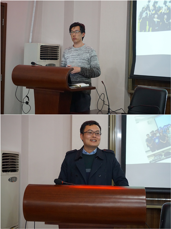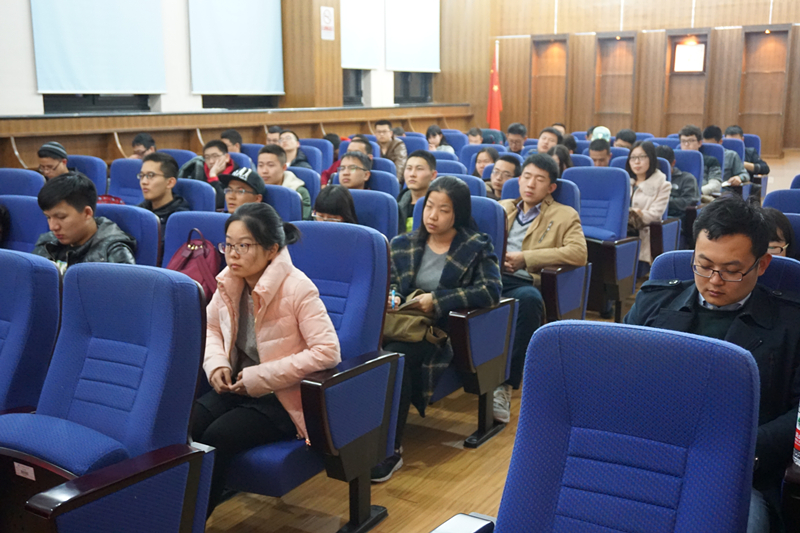 随后,学院分团委书记邵英华上台发言,对往届学生的就业、调剂以及出国情况进行了补充说明,并且提出了自己的建议。
